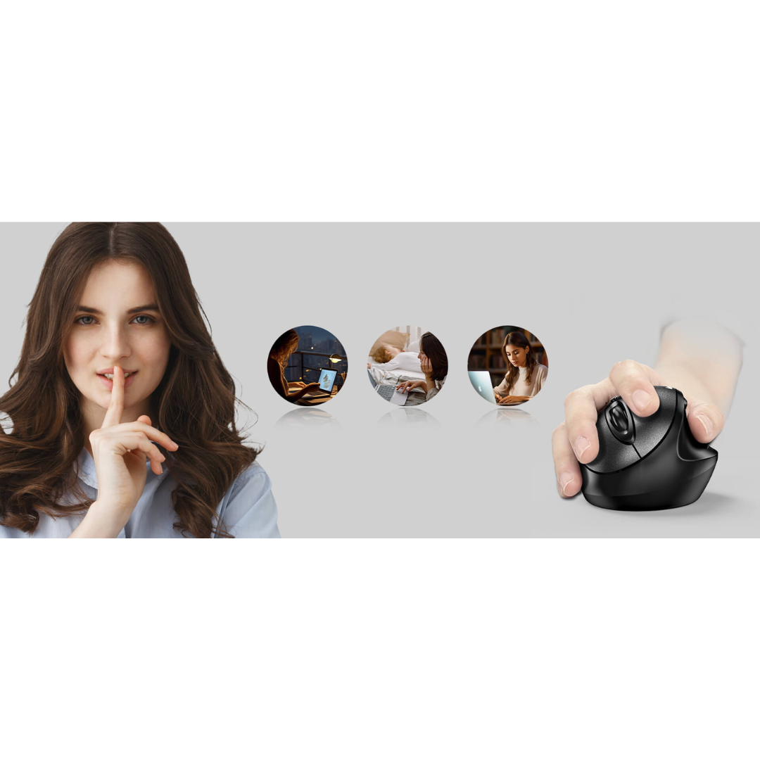 The Genius Ergo 8300S wireless vertical ergonomic silent mouse encourages a more natural posture for your right hand, helps alleviate fatigue and reduces muscle strain in the forearm and shoulder region.